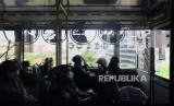Sejumlah penumpang menaiki bus Transjakarta di Halte Cakra Selaras Wahana (CSW), Kebayoran Baru, Jakarta, Kamis (11/8/2022). Gubernur DKI Jakarta Anies Baswedan menetapkan tarif integrasi untuk layanan transportasi umum massal yakni Transjakarta, MRT dan LRT dengan tarif maksimum dalam satu kali perjalanan sebesar Rp 10.000. (FOTO : Republika/Putra M. Akbar)