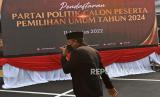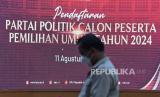 REPUBLIKA.CO.ID, JAKARTA -- Seorang karyawan melintas layar digital pendaftaran Partai Politik Calon Peserta Pemilu 2024 di Kantor KPU, Jakarta, Kamis (11/8/2022). Hingga Kamis sebanyak 23 Parpol telah terdaftar, 17 di antaranya dinyatakan berkasnya lengkap dan dilanjutkan ke dalam tahapan verifikasi administrasi.