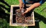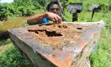 REPUBLIKA.CO.ID, ACEH JAYA -- Peternak memanen madu kelulut (Trigona itama) di salah satu tempat budi daya Sampoiniet Madu Linot di Desa Ie Jeureugeh, Sampoiniet, Aceh Jaya, Aceh, Kamis (11/8/2022).