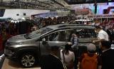 Pengunjung melihat mobil Mitsubishi New Xpander Cross yang baru diluncurkan pada pameran otomotif Gaikindo Indonesia International Auto Show (GIIAS) 2022 di Indonesia Convention Exhibition (ICE) BSD, Serpong, Tangerang, Banten, Kamis (11/8/2022). Model baru ini dilengkapi dengan peningkatan kualitas diberbagai fitur seperti keamanan, keagresifan sebuah SUV dengan tagline Rise To Your Lifes Adventure dan dibanderol seharga Rp300 jutaan. (FOTO : Republika/Edwin Dwi Putranto)