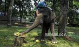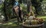 Seekor gajah sumatra (Elephas maximus sumatrensis) memakan buah saat peringatan Hari Gajah Sedunia 2022 di Bandung Zoological Garden, Kota Bandung, Jumat (12/8/2022). Peringatan Hari Gajah Sedunia yang dirayakan setiap 12 Agustus tersebut menjadi upaya menyebarkan kesadaran tentang pelestarian dan perlindungan satwa yang semakin berkurang populasinya di alam liar akibat konflik dengan manusia, perambahan hutan dan perburuan. Republika/Abdan Syakura (FOTO : REPUBLIKA/ABDAN SYAKURA)