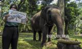 REPUBLIKA.CO.ID,BANDUNG -- Pawang satwa memberikan pakan buah ke gajah sumatra (Elephas maximus sumatrensis) saat peringatan Hari Gajah Sedunia 2022 di Bandung Zoological Garden, Kota Bandung, Jumat (12/8/2022).