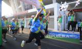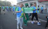 Pekerja BPJamsostek berlari saat mengikuti Gerakan Sejuta Langkah (GSL) di Gelora Bung Karno Jakarta, Jum’at (12/8). Gerakan massal tersebut dilakukan serentak di 10 kota lainnya, merupakan salah satu upaya BPJamsostek untuk menumbuhkan semangat berolahraga sehingga dapat meningkatkan produktivitas para pekerja. Foto: Tahta Aidilla/Republika?? (FOTO : Tahta Aidilla/Republika)