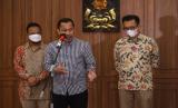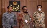 REPUBLIKA.CO.ID, DEPOK -- Ketua Komnas HAM Ahmad Taufan Damanik (tengah) didampingi Komisioner Komnas HAM Choirul Anam (kiri) dan Beka Ulung (kanan) memberikan keterangan pers di Mako Brimob, Kelapa Dua, Depok, Jawa Barat, Jumat (12/8/2022).