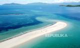 REPUBLIKA.CO.ID, GORONTALO UTARA -- Foto aerial Pulau Bugisa di Kecamatan Ponelo Kepulauan, Kabupaten Gorontalo Utara, Gorontalo, Jumat (12/8/22). Hamparan pasir putih, air laut yang jernih dan pepohonan hijau menjadi daya tarik salah satu objek wisata bahari unggulan yang ada di daerah itu.