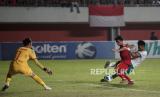 Gelandang Timnas U16 Indonesia Narendra Tegar berebut bola dengan kiper Timnas U16 Vietnam Pham Dinh Hai saat Final Piala AFF U16 Putra di Stadion Maguwoharjo, Sleman, Yogyakarta, Jumat (12/8/2022). Pada pertandingan Final AFF U16 Putra 2022 Timnas U16 Indonesia menjadi juara usai mengalahkan Timnas U16 Vietnam 1-0. Gol semata wayang dicetak oleh Kafiatur Rizky. (FOTO : Republika/Wihdan Hidayat)