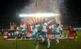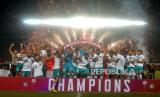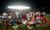 REPUBLIKA.CO.ID, SLEMAN -- Pemain dan official Timnas Indonesia U16 merayakan kemenangan usai seremoni penyerahan Piala AFF U16 Putra di Stadion Maguwoharjo, Sleman, Yogyakarta, Jumat (12/8/2022). Pada pertandingan Final AFF U16 Putra 2022 Indonesia mengalahkan Vietnam 1-0.