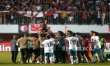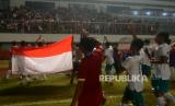 Pemain dan official Timnas U16 Indonesia ke tangah lapangan usia peluit panjang saat melawan Timnas U16 Vietnam pada Final Piala AFF U16 Putra di Stadion Maguwoharjo, Sleman, Yogyakarta, Jumat (12/8/2022). Pada pertandingan Final AFF U16 Putra 2022 Timnas U16 Indonesia menjadi juara usai mengalahkan Timnas U16 Vietnam 1-0. Gol semata wayang dicetak oleh Kafiatur Rizky. (FOTO : Republika/Wihdan Hidayat)