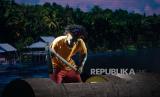 Penari membawakan drama musikal pada acara Pre-event Festival Danau Sentani 2022 dengan Tema Papua Intimate Dinner di Jakarta, Jumat (12/8/2022). Festival Tahunan Danau Sentani 2022 direncanakan akan diselenggarakan pada bulan Oktober 2022 dengan menghadirkan tarian-tarian adat diatas perahu, tarian perang khas papua, upacara adat seperti penobatan Ondoafi, serta sajian berbagai kuliner khas Papua. (FOTO : Prayogi/Republika.)