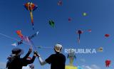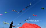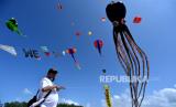 REPUBLIKA.CO.ID, Peserta Sanur International Kite Festival 2022 menerbangkan layang-layang di Pantai Mertasari, Denpasar, Bali, Jumat (12/8/2022). Festival layang-layang internasional tersebut diikuti oleh peserta dari berbagai negara seperti Indonesia, Australia, Polandia, Jepang dan Filipina dengan ratusan layang-layang berbagai bentuk dan ukuran.