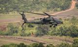 Helikopter AH-64E Apache milik TNI AD bermanuver saat puncak latihan bersama (Latma) Super Garuda Shield 2022 di Puslatpur Baturaja, Ogan Komering Ulu (OKU) Timur, Sumatera Selatan, Jumat (12/8/2022). Pelaksanaan puncak latihan  (FOTO : ANTARA/M Risyal Hidayat)