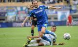 Gelandang Persib Bandung Marc Klok (kiri) berebut bola dengan bek PSIS Semarang Delfin Rumbino (kanan) saat pertandingan BRI Liga 1 di Stadion Gelora Bandung Lautan Api, Bandung, Jawa Barat, Sabtu (13/8/2022). (FOTO : ANTARA/Raisan Al Farisi)
