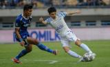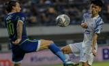 Bek Persib Bandung Rahmat Irianto (kiri) berebut bola dengan gelandang serang PSIS Semarang Taisei Marukawa (kanan) saat pertandingan BRI Liga 1 di Stadion Gelora Bandung Lautan Api, Bandung, Jawa Barat, Sabtu (13/8/2022). Pertandingan tersebut dimenangkan oleh Persib Bandung dengan skor 2-1. (FOTO : ANTARA/Raisan Al Farisi)