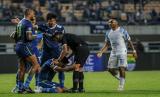 REPUBLIKA.CO.ID, BANDUNG -- Pesepak bola Persib Bandung melakukan protes kepada wasit saat berlaga melawan PSIS Semarang pada pertandingan BRI Liga 1 di Stadion Gelora Bandung Lautan Api, Bandung, Jawa Barat, Sabtu (13/8/2022). Pertandingan tersebut dimenangkan oleh Persib Bandung dengan skor 2-1.