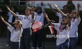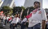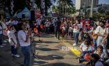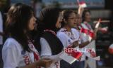 REPUBLIKA.CO.ID, JAKARTA -- Anggota Paduan Suara Merah Putih bernyanyi bersama pada Hari Bebas Kendaraan Bermotor (HBKB) di kawasan Bundaran HI, Jakarta, Ahad (14/8/2022).