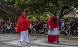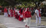 REPUBLIKA.CO.ID, PALU -- Peserta mengikuti peragaan busana jalanan (fashion street) bertema kemerdekaan di Palu, Sulawesi Tengah, Minggu (14/8/2022). Peragaan busana yang diinisiasi komunitas penjahit busana itu selain bertujuan memamerkan rancangan busana para desainer juga untuk memeriahkan peringatan HUT ke-77 Kemerdekaan RI.