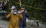 Komisioner Komnas HAM M. Choirul Anam (kiri) dan Beka Ulung Hapsara (kedua kiri) saat akan meninjau tempat kejadian perkara di rumah dinas mantan Kadiv Propam Irjen Pol Ferdy Sambo di Komplek Polri Duren Tiga, Jakarta, Senin (15/8/2022). Kedatangan Komnas HAM itu untuk memeriksa tempat kejadian perkara dan menyandingkan dengan data-data serta keterangan yang telah diperoleh Komnas HAM terkait dugaan pembunuhan berencana terhadap Brigadir J.   (FOTO : Republika/Putra M. Akbar)