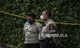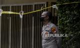 Polisi berjaga saat Komnas HAM meninjau tempat kejadian perkara di rumah dinas mantan Kadiv Propam Irjen Pol Ferdy Sambo di Komplek Polri Duren Tiga, Jakarta, Senin (15/8/2022). Kedatangan Komnas HAM itu untuk memeriksa tempat kejadian perkara dan menyandingkan dengan data-data serta keterangan yang telah diperoleh Komnas HAM terkait dugaan pembunuhan berencana terhadap Brigadir J. Republika/Putra M. Akbar (FOTO : Republika/Putra M. Akbar)