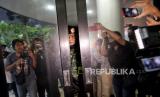 Petugas menutup pintu Gedung Jampidsus Kejaksaan Agung usai menghalangi jurnalis mengambil gambar tersangka kasus dugaan korupsi pemilik PT Duta Palma Group, Surya Darmadi di Kejaksaan Agung, Jakarta, Senin (15/8/2022). Usai menjalani pemeriksaan selama kurang lebih empat jam, Surya keluar dari gedung Jampidsus melalui pintu yang berbeda, sejumlah petugas berusaha menghalangi jurnalis saat akan mengambil gambar tersangka didalam mobil. Sementara Kejaksaan Agung melakukan penahanan terhadap Surya selama 20 hari pertama di Rumah Tahanan Negara (Rutan) Salemba cabang Kejaksaan Agung terhitung sejak 15 Agustus hingga 3 September 2022. Republika/Thoudy Badai (FOTO : Republika/Thoudy Badai)