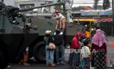 REPUBLIKA.CO.ID,YOGYAKARTA -- Warga melihat pameran alat alat utama sistem senjata (Alutsista) TNI saat Independence Military Expo di Yogyakarta, Senin (15/8/2022).