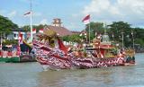 REPUBLIKA.CO.ID,Sebuah perahu hias mengikuti Festival Merah Putih di Sungai Krueng Aceh, Banda Aceh, Senin (15/8/2022).