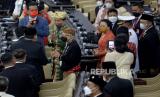 Presiden Joko Widodo memberi salam kepada anggota DPR yang hadir usai sidang tahunan MPR dan Sidang Bersama DPR-DPD di Komplek Parlemen, Senayan, Jakarta, Selasa (16/8/2022). Prayogi/Republika (FOTO : Prayogi/Republika.)