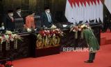 Presiden Joko Widodo memberi hormat sebelum menyampaikan pidato dalam sidang tahunan MPR dan Sidang Bersama DPR-DPD di Komplek Parlemen, Senayan, Jakarta, Selasa (16/8/2022). Prayogi/Republika (FOTO : Prayogi/Republika.)