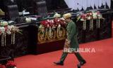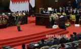 Presiden Joko Widodo memberi hormat sebelum menyampaikan pidato dalam sidang tahunan MPR dan Sidang Bersama DPR-DPD di Komplek Parlemen, Senayan, Jakarta, Selasa (16/8/2022). (FOTO : Prayogi/Republika. )