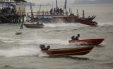 REPUBLIKA.CO.ID,BATAM -- Sejumlah peserta memacu kapal motor kecil (pancung) dalam balap kapal pancung di Dataran Elang laut, Batam, Kepulauan Riau, Selasa (16/8/2022).