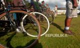Anggota Paguyuban Onthel Djogjakarta (Podjok) bersiap mengikuti Upacara 17 Agustus di Halaman Ndalem Kepatihan Pura Pakualaman, Yogyakarta, Rabu (17/8/2022). Podjok bersama Perempuan Berkebaya mengadakan Upacara Hari Kemerdekaan 17 Agustus dengan teman zaman dulu. Untuk Onthelis menggunakan pakaian tentara atau pakaian peranakan Jawa. Tidak lupa onthel yang dibawa juga ikut dipajang saat upacara. (FOTO : Republika/Wihdan Hidayat)