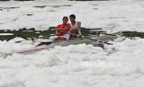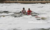 Atlet Dayung DKI Berlatih di Sungai Penuh Busa Limbah