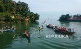 REPUBLIKA.CO.ID, PADANG -- Sejumlah nelayan dan warga mengikuti upacara pengibaran Bendera Merah Putih di Muaro Sungai Batang Arau, Padang, Sumatera Barat, Rabu (17/8/2022).