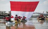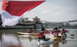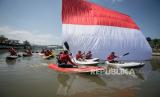 REPUBLIKA.CO.ID, SOLO -- Korps Relawan Peduli Sungai Solo Raya (Karsa) mengikuti upacara bendera peringatan HUT ke-77 Kemerdekaan Indonesia di tengah Kali Anyar, Solo, Jawa Tengah, Rabu (17/8/2022). Upacara dan aksi pengibaran bendera Merah Putih berukuran 12 X 8 meter di tengah sungai tersebut sebagai upaya mengajak masyarakat menjaga kebersihan dan kelestarian sungai.
