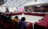 Pegawai KPU saat mengikuti uji publik Terhadap Rancangan Peraturn KPU Tentang Partisipasi Masyarakat dalam Pemilihan Umum dan Pemilihan Gubernur dan Wakil Gubernur, Bupati dan Wakil Bupati dan/atau Walikota dan Wakil Walikota di Gedung KPU, Jakarta, Kamis (18/8/2022). Rancangan peraturan KPU tersebut diharapkan mampu meningkatkan partisipasi masyarakat serta mewujudkan penyelenggaraan pemilihan umum yang lebih demokratis. (FOTO : Prayogi/Republika.)
