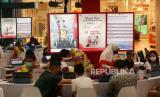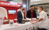 Direktur Consumer Banking CIMB Niaga Noviady Wahyudi (tengah) bersama dengan Country Manager Cathay Pacific Indonesia Matthew Choi (kiri) melayani nasabah di booth CIMB Niaga usai pembukaan Cathay Pacific Travel Fair 2022 di Jakarta, Kamis (18/8/2022). CIMB Niaga memberikan kemudahan bagi penggemar wisata dengan memberikan solusi pembayaran ringan melalui kartu kredit dan debit dengan promo berupa cashback hingga Rp1,7 juta, cicilan 0% sampai 12 bulan, dan hemat hingga 100% untuk mendapatkan tiket dengan cara menukarkan Poin Xtra CIMB Niaga yang sudah dimiliki. Foto: darmawan/republika. (FOTO : REPUBLIKA)