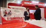 Seorang oengunjung akan melakukan transaksi mnggunakan kartu CIMB Niaga pada acara pameran Cathay Pacific Travel Fair 2022 di Jakarta, Kamis (18/8/2022). CIMB Niaga memberikan kemudahan bagi penggemar wisata dengan memberikan solusi pembayaran ringan melalui kartu kredit dan debit dengan promo berupa cashback hingga Rp1,7 juta, cicilan 0% sampai 12 bulan, dan hemat hingga 100% untuk mendapatkan tiket dengan cara menukarkan Poin Xtra CIMB Niaga yang sudah dimiliki. Foto: darmawan/republika. (FOTO : REPUBLIKA)