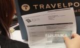 Pengunjung melalukan transaksi di salah satu booth peserta pameran Cathay Pacific Travel Fair 2022 di Jakarta, Kamis (18/8/2022). CIMB Niaga memberikan kemudahan bagi penggemar wisata dengan memberikan solusi pembayaran ringan melalui kartu kredit dan debit dengan promo berupa cashback hingga Rp1,7 juta, cicilan 0% sampai 12 bulan, dan hemat hingga 100% untuk mendapatkan tiket dengan cara menukarkan Poin Xtra CIMB Niaga yang sudah dimiliki. Foto: darmawan/republika. (FOTO : REPUBLIKA)