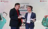 Direktur Consumer Banking CIMB Niaga Noviady Wahyudi (kiri) berbincang dengan Country Manager Cathay Pacific Indonesia Matthew Choi (kanan) saat pembukaan Cathay Pacific Travel Fair 2022 di Jakarta, Kamis (18/8/2022). CIMB Niaga memberikan kemudahan bagi penggemar wisata dengan memberikan solusi pembayaran ringan melalui kartu kredit dan debit dengan promo berupa cashback hingga Rp1,7 juta, cicilan 0% sampai 12 bulan, dan hemat hingga 100% untuk mendapatkan tiket dengan cara menukarkan Poin Xtra CIMB Niaga yang sudah dimiliki. Foto: darmawan/republika. (FOTO : REPUBLIKA)