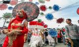 REPUBLIKA.CO.ID,LHOKSEUMAWE -- Peserta karnaval menggunakan pakaian kreasi adat saat melintas di jalan Merdeka Utama, Lhokseumawe, Aceh, Kamis (18/8/2022).