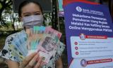 Warga menunjukkan uang kertas baru tahun emisi 2022 usai penukaran di mobil kas keliling Kantor Perwakilan (Kpw) Bank Indonesia (BI) Tegal di Tegal, Jawa Tengah, Jumat (19/8/2022). Penukaran tujuh pecahan emisi tahun 2022 yakni Rp1.000, Rp2.000, Rp5.000, Rp10.000, Rp20.000, Rp50.000 dan Rp100.000 tersebut merupakan upaya Bank Indonesia dalam mewujudkan semangat kebangsaan, nasionalisme serta menumbuhkan optimisme terhadap pemulihan ekonomi nasional. (FOTO : ANTARA/Oky Lukmansyah)
