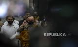Ketua Tim Gabungan Khusus Polri yang juga Irwasum Polri Komjen Agung Budi Maryoto (tengah) usai memberikan keterangan saat konferensi pers di Mabes Polri, Jakarta, Jumat (19/8/2022). Polri menetapkan istri mantan Kadiv Propam Polri Irjen Ferdy Sambo, Putri Candrawathi sebagai tersangka pada kasus pembunuhan Brigadir Yosua Hutabarat, berdasarkan pemeriksaan mendalam dengan scientific crime investigation, alat bukti dan gelar perkara. Republika/Putra M. Akbar (FOTO : Republika/Putra M. Akbar)
