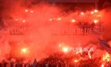 Suporter Persib Bandung menyalakan suar usai melawan PSS Sleman pada pertandingan Liga 1 2022 di Stadion Maguwoharjo, Sleman, Yogyakarta, Jumat (19/8/2022). Pada pertandingan ini tuan rumah PSS Sleman mengakui keunggulan Persib Bandung dengan skor 0-1. Gol tunggal Persib dicetak oleh penyerang Persib Bandung David Da Silva. (FOTO : Republika/Wihdan Hidayat)