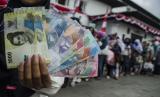 Warga menunjukkan pecahan uang rupiah kertas terbaru saat penukaran di Gedung Sate, Bandung, Jawa Barat, Jumat (19/8/2022). Warga antusias menukarkan uang rupiah kertas tahun emisi 2022 yang dikeluarkan Bank Indonesia (BI) yang terdiri atas pecahan Rp100.000, Rp50.000, Rp20.000, Rp10.000, Rp5.000, Rp2000, dan Rp1000. (FOTO : ANTARA/Novrian Arbi)