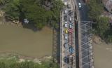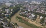 REPUBLIKA.CO.ID,BEKASI -- Foto udara alat berat eskavator menyelesaikan proyek normalisasi Kali Bekasi paket 1 di Pondok Gede, Bekasi, Jawa Barat, Sabtu (20/8/2022).