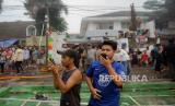 Warga berada di lokasi kebakaran pemukiman di kawasan Simprug Golf II, Kebayoran Lama, Jakarta Selatan, Ahad (21/8/2022). (FOTO : Republika/Thoudy Badai)