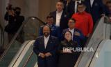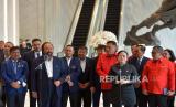 Ketua DPP PDIP Puan Maharani bersama Ketua Umum Partai Nasdem Surya Paloh dan jajaran petinggi kedua partai berjalan usai pertemuan di Kantor DPP Nasdem, Jakarta, Senin (22/8/2022). Pertemuan tersebut dalam rangka silahturahmi sekaligus safari politik yang merupakan salah satu dari amanat Rakernas PDIP dengan menugaskan Puan Maharani untuk membuka komunikasi dengan partai lain menjelang Pemilu 2024. Prayogi/Republika (FOTO : Prayogi/Republika.)