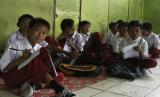 Sejumlah siswa SDN (Sekolah Dasar Negeri) Sukadaya 02 mengikuti kegiatan belajar mengajar tanpa bangku dan meja di Sukawangi, Kabupaten Bekasi, Jawa Barat, Senin (22/8/2022). Menurut keterangan pihak sekolah sudah 5 tahun satu ruang kelas tidak memiliki meja dan bangku belajar. (FOTO : ANTARA/Fakhri Hermansyah)