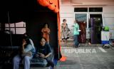 Warga korban kebakaran beraktivitas di posko pengungsian di kawasan Simprug Golf II, Kebayoran Lama, Jakarta Selatan, Selasa (23/8/2022). Kebakaran yang menghanguskan sekitar 100 rumah tersebut membuat 301 orang dewasa, 52 anak, 25 balita dan 20 lansia mengungsi di lima titik tenda pengungsian dan di Gereja Somang. (FOTO : Republika/Thoudy Badai)