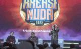 Ketua Dewan Komisioner Otoritas Jasa Keuangan (OJK) Mahendra Siregar (kanan) bersama Menko Perekonomian Airlangga Hartarto (tengah) serta Anggota Dewan Komisioner OJK Bidang Edukasi dan Perlindungan Konsumen Friderica Widyasari Dewi?(kiri) memberikan paparannya pada acara peluncuran Program SiMuda Gen 2 Kreasimuda Indonesia 2022 di Jakarta, Selasa (23/8/2022). Program yang diselenggarakan oleh OJK dalam rangka peringatan Hari Indonesia Menambung tersebut bertujuan untuk mendorong agar setiap pelajar berusia di bawah 18 tahun memiliki setidaknya satu rekening tabungan di bank. (FOTO : ANTARA/Muhammad Adimaja)