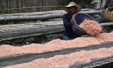 REPUBLIKA.CO.ID, JAKARTA -- Warga menjemur ikan untuk diproses menjadi olahan ikan asin di Kamal Muara, Jakarta, Selasa (23/8/2022). Ikan asin dan udang asin yang diproduksi warga di kampung nelayan tersebut dijual seharga Rp25.000-Rp40.000 per kilogram serta dipasarkan ke sejumlah pasar di DKI Jakarta, Banten, dan Jawa Barat.